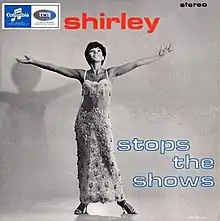 Shirley Stops the Shows is the seventh Shirley Bassey studio album, her 5th and final studio album recorded for the EMI/Columbia label in the UK. Released in 1965, this album is a mix of standards and showtunes. Shirley Bassey was at a high point in her career, with worldwide success of her single "Goldfinger", but the album failed to chart in the UK, a first for her Columbia albums.[2] The album met with more success in the US, reaching number 85 in the US Pop charts.[3] For the US market it was issued with an alternative running order, retitled Shirley Bassey Belts the Best! and "The Lady Is a Tramp" was replaced by "Goldfinger". Original release was in mono and stereo, both mono versions feature an alternative studio recording of "People" which has not yet been re-issued on CD. The stereo version, remastered, was issued on CD in 2008 together with 12 of Those Songs by BGO Records.