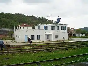 The 28 kilometre rail line between Vorë and Laç was completed between 1962 and 1963 with the help of volunteers. Raw materials were imported from Morocco, which were then hauled by locomotives from Durrës to Laç.[1] The line officially opened on 7 May 1963.[2]