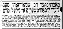 Shmaryahu Noah Schneersohn (1842-1923) was the fourth and last rebbe of Kopust, a branch of the Chabad dynasty of Hasidism. He succeeded as 4th leader of the group after his brother, Shalom Dovber Schneersohn, died.[1] Other sources say he succeeded his brother, Shlomo Zalman Schneersohn, as leader of the group in the year 1900 after Shlomo Zalman died.[2][3][4][5] He served as the Kopuster movement's rebbe in the town of Babruysk.[6] He was rabbi of the chasidim in Babruysk from 1872, and founded a yeshiva there in 1901.[7] He authored a two-volume work on Hasidism, titled "Shemen LaMaor" ("Light for the Luminary").[2][4][5]