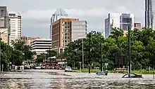 Shoal Creek’s Hike-and-Bike Trail is the oldest trail in Austin. It was started by Janet Fish in the late 1950s, who hired a bulldozer and operator and made a trail through Pease Park.[7][63] More of it was built by volunteers in the 1960s and improved by the City in the 1970s. Parts were rendered impassable by the flooding on May 4, 2018. At one time it was possible to walk from 38th Street to Lady Bird Lake on the trail, with the exception of one block on 31st Street where steep canyon sides and private property force a hiker to use the street. More recently, following a landslide in 2019, a portion of the trail is now closed and rerouted along existing sidewalks along North Lamar Boulevard. Besides the aforementioned block and this, it is possible to commute entirely using the trail from 38th to Lady Bird Lake, however, some portions are fairly risky for bikers, due to their narrow width and cave embankments restricting height above.