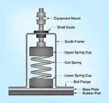 Cable mounts are based around a coil of wire rope fixed to an upper and lower mounting bar.[6][7] When properly matched to the load, these mounts provide isolation over a broad frequency range. They are typically applied to high performance applications, such as mounting sensitive instrumentation into off-road vehicles and shipboard.