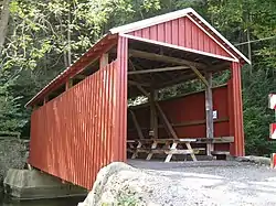 The Shoemaker Covered Bridge is a historic wooden covered bridge located at Pine Township in Columbia County, Pennsylvania. It is a 49-foot-long (15 m), Queen Post Truss bridge constructed in 1881. It crosses West Branch Run and is one of 28 historic covered bridges in Columbia and Montour Counties.[2] It was listed on the National Register of Historic Places in 1979.[1]