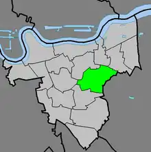 Shooter's Hill ward (green) within the Royal Borough of Greenwich (light grey)