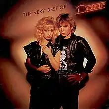 Dollar left Carrere Records in early 1980 and signed to WEA Records where they went on to find even greater success. Eager to cash in on this, their original label re-released Shooting Stars as The Very Best of Dollar with a new cover and added track - their fourth and final hit with the label, "I Wanna Hold Your Hand". Another single, "Ring Ring" was released to coincide with the album, which clashed with Dollar's latest official single, "Give Me Back My Heart".[6][7] The album actually improved on its original chart performance, reaching no. 31, which was surprising considering that it featured none of Dollar's recent hits and received no promotion from the duo themselves.[8] The album was certified Silver by the BPI later in the year.[9]