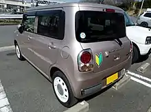 The shoshinsha mark (初心者マーク) or Wakaba mark (若葉マーク), officially Beginner Drivers' Sign (初心運転者標識, Shoshin Untensha Hyōshiki), is a green and yellow V-shaped symbol that new drivers in Japan must display at the designated places at the front and the rear of their cars for one year after they obtain a standard driver's license. Drivers who consider themselves beginners may continue to display the sign, even after the period of a year.[1] Like the orange and yellow "fukushi mark" or "kōreisha mark" that denotes elderly drivers, the shoshinsha mark is designed to warn other drivers that the marked driver is not very skilled, either due to inexperience or old age.[2]