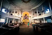 St Chad's Church collapsed in 1788 after attempts to expand the crypt compromised the structural integrity of the tower above. Now known as Old St Chad's, the remains of the church building and its churchyard are on the corner of Princess Street, College Hill and Belmont. A new St Chad's Church was built just four years after the collapse, but as a large neo-classical round church and in a different and more elevated location, at the top of Claremont Hill close to The Quarry.[24]