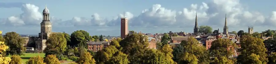![]() ![]() ![]() ![]() Clockwise from top: Shrewsbury skyline, Shrewsbury Castle, English Bridge and The Square | |