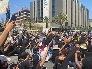 ![]() Protesters obstructing an intersection in the Windhoek City Centre on 8 October 2020 | |