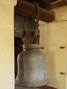 The Shwezigon Pagoda Bell Inscription (Burmese: ရွှေစည်းခုံဘုရား ခေါင်းလောင်းစာ) is a multi-language inscription found on the Shwezigon Pagoda Bell, donated by King Bayinnaung of Toungoo Dynasty and located at the Shwezigon Pagoda in Bagan, Burma (Myanmar). Written in Burmese, Mon, and Pali, the inscription lists the important events in the first six years of his reign. It is the only contemporary record in Burmese that calls the king "Conqueror of the Ten Directions", the title by which he is widely known in Mon and Thai.[1]