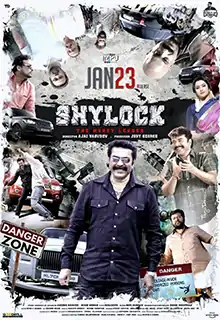 Shylock is a 2020 Indian Malayalam-language action thriller film directed by Ajay Vasudev. The film stars Mammootty, Rajkiran, Meena, Siddique, Kalabhavan Shajon, Baiju Santhosh,Bibin George, John Vijay and Hareesh Kanaran. Shylock is a slang term for a loan shark.[4] The film is written by debutants Aneesh Hameed and Bibin Mohan and was released on 23 January 2020.