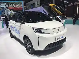 SiTech's first vehicle was the DEV1, which came out in 2018. It costs 139,900 to 164,900 yuan,[2] and has a charging time of 40 minutes for 80% full battery.[3] Its dimensions measure 3,735 mm (147.0 in)/1,655 mm (65.2 in)/1,550 mm (61.0 in), and has a kerb weight of 1,120 kg (2,469 lb).[4][5] It includes a 10-inch touch screen and an 8-inch instrument panel, and a 350 kilometer range.[6] It has been rated A0+ level intelligent.[7]