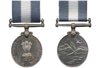 The Siachen Glacier Medal is awarded for service in the Siachen conflict along India's northern border with Pakistan. Awarded to the Indian Air Force for Operation Meghdoot, in support of activities in support of troops serving in the Siachen Glacier area since April 1984.