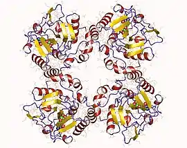The biosynthesis of disaccharides, oligosaccharides and polysaccharides involves the action of hundreds of different glycosyltransferases. These enzymes catalyse the transfer of sugar moieties from activated donor molecules to specific acceptor molecules, forming glycosidic bonds. A classification of glycosyltransferases using nucleotide diphospho-sugar, nucleotide monophospho-sugar and sugar phosphates (EC 2.4.1.-) and related proteins into distinct sequence based families has been described.[2] This classification is available on the CAZy (CArbohydrate-Active EnZymes) web site.[3] The same three-dimensional fold is expected to occur within each of the families. Because 3-D structures are better conserved than sequences, several of the families defined on the basis of sequence similarities may have similar 3-D structures and therefore form 'clans'.