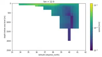 The outflow of dense-water-masses characteristics of the Strait of Sicily are not stable but have been found to change interannually.[16] Also the thermohaline circulation showed changes in structure and stratification. These changes were caused by deep water formed in the Aegean Sea which replaced the water formed in the Adriatic during the 1990s. This dense water caused enhanced salinity and temperatures in the Aegean Sea for a few years creating the deep/mediate Mediterranean overturning perturbation which has been given the name of Eastern Mediterranean Transient (EMT).[17][18] The EMT is the major perturbation of the circulation and water mass aspects in this area since systematic observational data is available (1950s). The effect of the EMT on the Strait of Sicily was a freshening of the surface waters.[19]