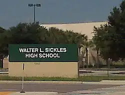 Walter L. Sickles High School is a public high school in Citrus Park, Florida, United States. Constructed in 1997, it was named for the superintendent of Hillsborough County Public Schools from 1989 to 1996.[7]