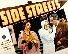 Side Streets, also known in the UK as A Woman in Her Thirties, is a 1934 American romantic melodrama film starring Aline MacMahon and Paul Kelly. The screenplay concerns a spinster who hires, then marries, a destitute sailor who is not always faithful.