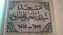 It was built in 1640, in the Mouradite era,[1] to commemorate Bellahssan El Halfaoui, one of the Sidi Mohammed El Halfaoui descendants, a practitioner of tariqa and the shadhili. His mausoleum is close to the mosque, on Hammam El Remimi Street.[2]
