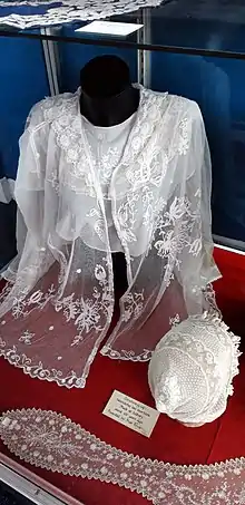 Sidmouth Museum holds considerable quantities of lace in its collection, though only a small fraction of this can be displayed physically in the building itself. A digital monitor allows visitors to view other examples of lace not on public display at the museum. The room also hosts the original Long Picture, a panorama of Sidmouth seafront painted by Hubert Cornish in 1814.