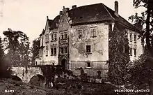 In 1942, Janowitz Castle was seized by German troops and converted into the SS-Truppenübungsplatz Böhmen, training grounds for the Waffen-SS. After the war, Nádherná tried to reclaim her family's property, but was unsuccessful. The castle continued to be used by the army, and in 1948 was confiscated by the Communist Party of Czechoslovakia. Nádherná was briefly arrested before fleeing to Great Britain through Bavaria.[4] In 1950 she died impoverished while still in exile.