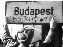 ![]() A Soviet soldier writing "Budapest" in Russian on a signpost after the siege | |||||||