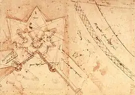 - Guicciardini, History of Italy, 414. Guicciardini records that the Duke of Urbino suggested that the defenses would be stronger with the outlying districts intact; but that the Florentines did not know how to adequately fortify them..