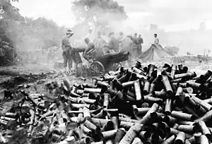![]() An American M1A1 75-mm pack howitzer supports GALAHAD's operations at Myitkyina. | |||||||||