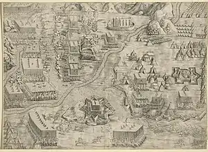 The siege of Székesfehérvár also known as the siege of Stuhlweissenburg (French: Prise d'Albe-Royale, German: Belagerung von Stuhlweißenburg, Turkish: İstolni Belgrad) began on 4 September 1601 when an Imperial force sent by Holy Roman emperor Rudolf II, under the command of Frenchman Philippe Emmanuel de Lorraine, duc de Mercoeur, besieged the Hungarian fortress of Székesfehérvár occupied by the Ottomans since 1453. The battle resulted in a victory for the Imperial force.[2]