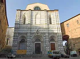 The Battistero di San Giovanni (Italian: "Baptistry of St. John") is a religious building in Siena, Italy. It is in the square with the same name, near the final spans of the choir of the city's cathedral.