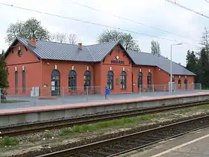 Sieradz is a railway station located in the Polish town of Sieradz, in Łódź Voivodeship. It is classified by PKP as a regional station.[1] The station serves mainly regional services between Łódź and Poznań, as well as PKP Intercity trains running between Warsaw and Wrocław. It is also a terminus for ŁKA services running from Łódź Kaliska station.