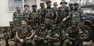 Operation Khukri was a unique multinational operation launched in the United Nations Assistance Mission in Sierra Leone (UNAMSIL), involving India, Nepal, Ghana, Britain and Nigeria. The aim of the operation was to break the two-month-long siege laid by armed cadres of the RUF around two companies of 5/8 Gurkha Rifles (GR) Infantry Battalion Group at Kailahun by affecting a fighting break out and redeploying them with the main battalion at Daru.[102] About 120 special forces operators commanded by Major (now Lt. Col.) Harinder Sood were airlifted from New Delhi to spearhead the mission to rescue 223 men of the Gurkha Rifles who were surrounded and besieged by the RUF rebels for over 75 days. The mission was a total success which resulted in safe rescue of all the besieged men and inflicted several hundreds of casualties on the RUF, where Indian troops were part of a multinational UN peacekeeping force.[103][104]
