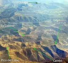- To the south are the lower elevations, distributed anarchically, such as Cerro San Cristóbal, Pico de la Tornera, Pico de la Centenera, Cabezas and Palancar.