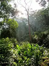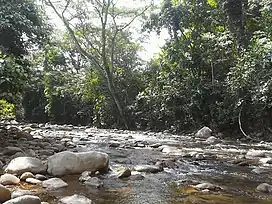 The vegetation in the park consists mainly of rainforest, cloud forests, highland moors and sub-alpine and alpine tundra.[1] Some typical trees include Anacardium excelsum, wax palms Ceroxylon, Cecropia, Gyranthera caribensis, Tabebuia chrysantha, T. billbergii, T. chrysea and Podocarpus oleifolius and there are many herbs, flowering plants and bromeliads.[5][6]
