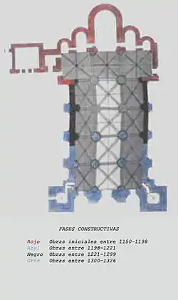 The ambulatory was built at the end of the 16th century, abandoning the previous typology with the demolition of the old Romanesque apse with five chapels and replacing it with a deambulatory that revolved around the greater apse.[35]