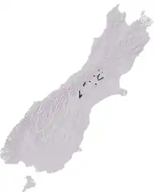 - Type locality: Mount Torlesse, 1,524–1,707 metres (5,000–5,600 ft), Canterbury. 43°15′21″S 171°49′17″E