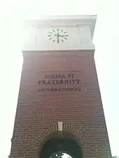 After its founding in 1897, the Alpha chapter at Vincennes University closed in 1910. It remained dormant for 55 years until 1965 when the Alpha chapter was re-activated. Grand Sage Frank C. Fryburg worked with the students and administration at Vincennes to re-activate the chapter. However, the North American Interfraternity Conference prevented its members from opening chapters at 2 year Junior colleges. Honorary Grand Sage Curtis G. Shake was tasked with creating a formal petition to the NIC, which requested special dispensation be granted to Sigma Pi to reopen the chapter. The petition passed and on February 26, 1965, Alpha chapter was re-charted.[1] In December 1970, the success of the Alpha chapter convinced the NIC to allow chapters at all junior colleges. A clock tower on the campus of Vincennes University commemorates the foundation of Sigma Pi. Despite Sigma Pi's diminished presence in the area after the move of its headquarters, the fraternity still recognizes and celebrates the university as its birthplace. The Alpha chapter is still active today, claiming some of the university's most notable alumni, including three Vincennes University Presidents, as members.[5]