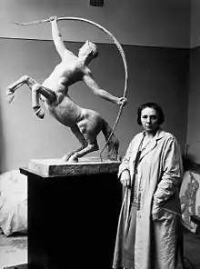 Around 1924, Fridman and Barkman moved to Stockholm and became friends with another lesbian couple, Klara Johanson and Ellen Kleman.[5][6] They spent time together until Johanson's death in 1948, often taking summer trips together to Rättvik and Masesgården.[7] On one study trip to Greece, Fridman and Johanson became romantically involved, though neither left their long-term partners.[6] In 1927, Fridman created a sculpture of Fredrika Bremer,[8] which caused controversy about whether a woman should be engaged as a serious sculptor. This debate continued, with many male colleagues taking the position that women should only sculpt children's portraits or small pieces that depicted femininity, when in 1928, Fridman proposed her Centaur statue.[3]