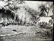 The inhabitants of Nguni and Kyuu took part in this tradition by sending their envoy to Kihubihu to get a torch lit. The flame was then used to start a large fire on a spectacular spot in Nguni, a high dramatic promontory encircled by steep ravines on three sides. This custom of devotion and purification by fire is unknown to have been practiced by anyone else on Mount Kilimanjaro. The new Lutheran mission ended the practice, and it may be a sign of its influence on people's thoughts that the mission decided to establish its first post in Siha, the kingdom's first Christian outpost, in the far-flung center of fire-worship, mtaa Mane. Before the First World War, the last time the tradition was used, a German administrative officer serving in Moshi predicted to the Siha people that they would see a shooting star in March 1910. When this happened, the Siha people asked the Nkini clan to lead the sacrifice at Wawa because they believed that it would be followed by disease.[15]