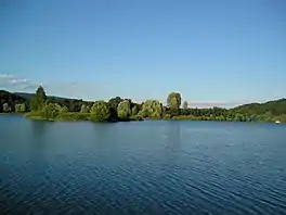 The artificial lake arose in the early 1970s during the construction of the nearby Süd Autobahn. Owned by the Villach city administration, it is today part of a publicly accessible recreation area and a popular destination for bathers as well as for ice-skaters in winter. In 1991 the lake was the site of the world water skiing championship.