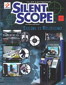 Silent Scope (サイレントスコープ, Sairento Sukōpu) is an arcade game created in 1999 by Konami. The game puts the player in the shoes of a sniper during a series of terrorist incidents. It is the first in the Silent Scope series.