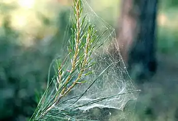 - Some types of spiders are known to migrate through the air, sometimes in large numbers, on cobweb gliders.[2] Many cases of angel hair were found to be these spider threads and, in one occasion, small spiders have been found on the material.[8][11] Linyphiidae spiders frequently cause showers of gossamer threads in England and the Northern hemisphere.[13] Australia and New Zealand have frequent cases, caused by several native species of spiders and by some introduced species of Linyphiidae.[13]