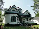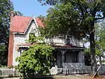 c.1890 | Ottis Cook built this home in 1890 in Gother Brunel motif with Eastlake interior. Mr. Cook owned a large farm which was rented to others for work. After passing from the Cook family, the house served as Toddle Inn, a children's daycare center. It stood empty for years before being purchased restored by the current owners. |