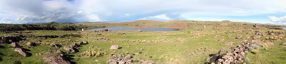 Sillustani is a pre-Inca cemetery on the shores of Lake Umayo near Puno in Peru. The tombs, which are built above ground in tower-like structures called chullpas, are the vestiges of the Qulla people, who are Aymara conquered by the Inca Empire in the 15th century.