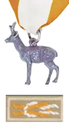 The award consists of a silver antelope suspended from a white and orange ribbon worn around the neck. Recipients may wear the corresponding square knot, with a white strand over an orange strand, on the BSA uniform.[2]
