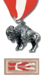 The award consists of a silver buffalo (American bison) medal suspended from a red and white ribbon worn around the neck. Recipients may wear the corresponding square knot, with a white strand over a red strand, on the BSA uniform.[1]
