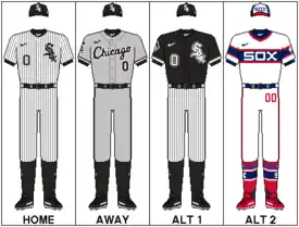 In 2021, to commemorate the Field of Dreams game, the White Sox wore special uniforms honoring the 1919 team. That same year, the White Sox wore "City Connect" alternate uniforms introduced by Nike, featuring an all-black design with silver pinstripes, and "Southside" wordmark in front.