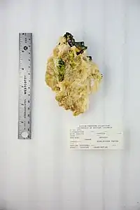 Over the years, the mine has produced world class crystals of titanite, apatite, mica, and zircon.[3] Silver Crater Mine is most noted for its unusual betafite crystals, which geologists have yet to sufficiently analyse to understand their geological origins.[8] Betafite crystals from the mine contain 15% to 20% uranium, making them highly radioactive.[9]