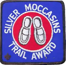 The Silver Moccasin Trail started as a series of Indian trails originally created by the local Native Americans (probably Tongva), but its use was continued by Anglo settlers who either hunted or hiked along its route. In 1942, the Los Angeles Area Council of Boy Scouts established a designated route as the Silver Moccasin Trail, and any Scouts who complete the hike, usually involving several days travel, are qualified to receive the Silver Moccasins Award.[2] Boy Scouts, especially those who are enrolled in "hiking troops," walk this trail usually as part of a five-day backpack trip.