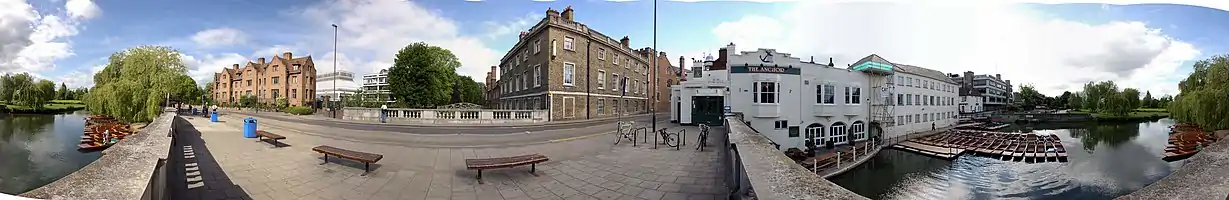 To the north are The Backs along the river, providing one of the best views in Cambridge of the backs of some of the most historic and prestigious Cambridge University colleges.