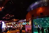 Among the casino's new eateries was the Twin Creeks steakhouse,[38] and the Mermaid Restaurant & Lounge, which features mermaid shows in the casino's aquarium.[39][40] The aquarium holds 117,000 gallons of water, and includes sting rays and small sharks, in addition to the mermaid performers.[41][42][43][44] Each December, the aquarium also hosts underwater Santa Claus actors.[45][46][47][48]