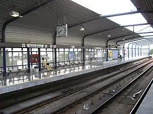 The Simón Bolívar Station (Spanish: Estación Simón Bolívar) is a station on Line 1 of the Monterrey Metro. It is located on Simón Bolivar Avenue. This station is located in the Colon Avenue in the northeast side of the Monterrey Centre. The station was opened on 25 April 1991 as part of the inaugural section of Line 1, going from San Bernabé to Exposición.[1]